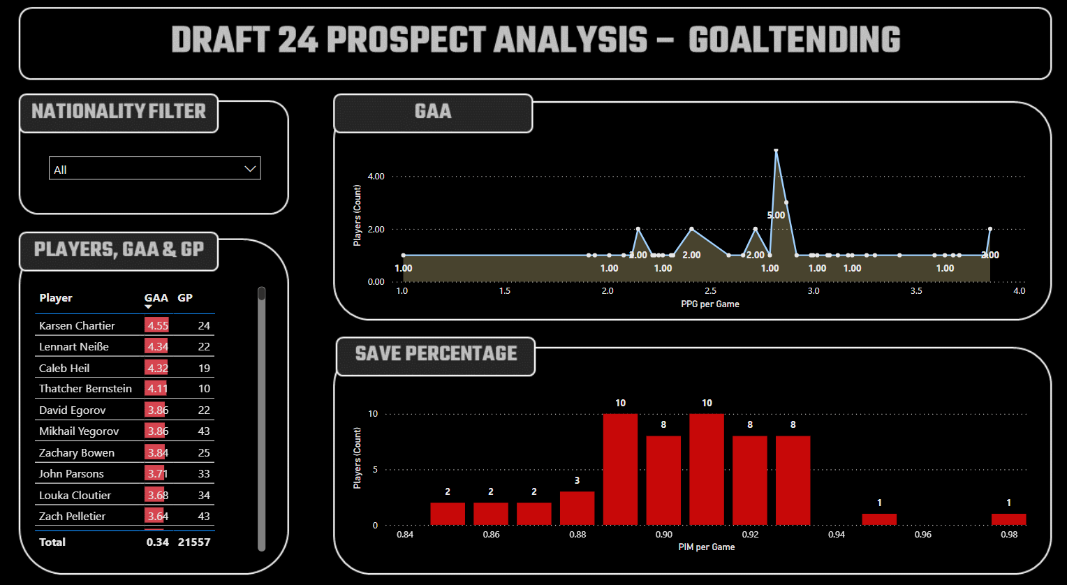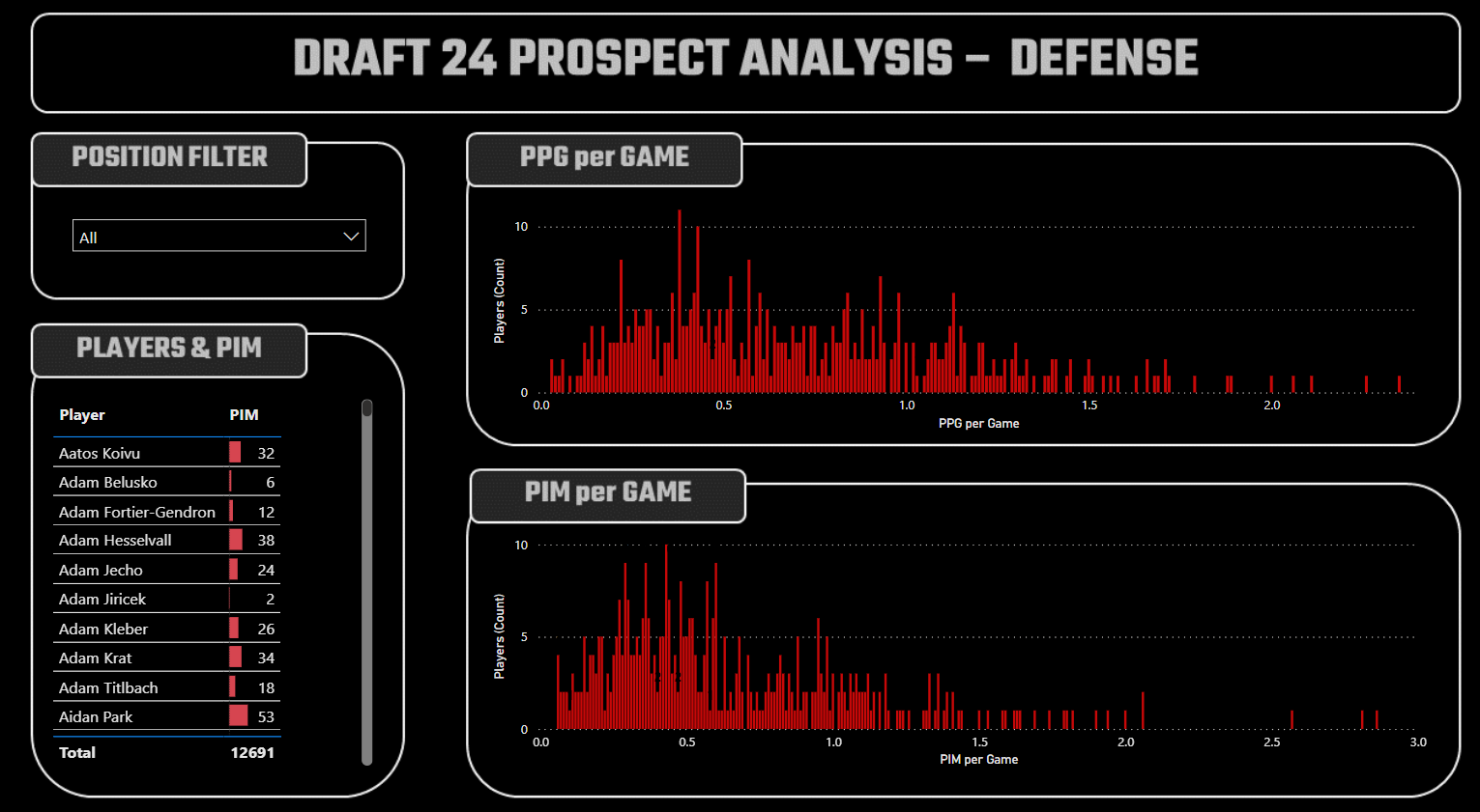 - Incoming Prospects Dashboard: Explore the demographics, offense, defense and goaltending metrics on the NHL 2024 Draft prospects using Power BI.