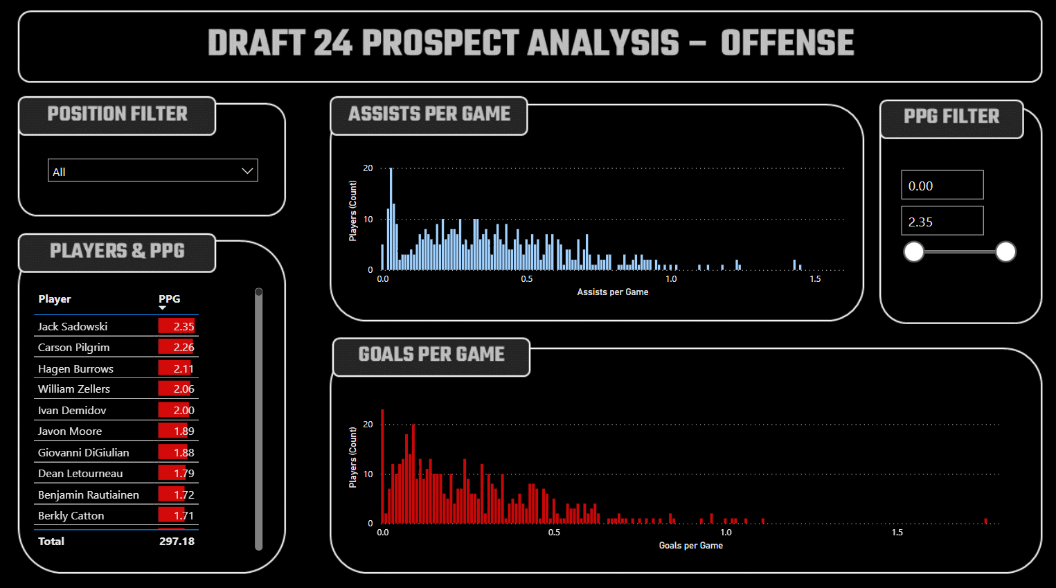 In this week's newsletter edition (Week 4 in our six-week Preparing for the NHL Draft 2024 series), we began to explore the incoming draft prospects. We did by 1) exploring the available data on the prospects through the process of data discovery in Microsoft Excel; and 2) creating a Draft 2024 dashboard using Power BI.