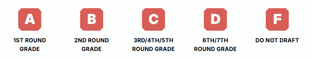 The second is the Elite Prospects NHL Draft Guide 2024, which provides a comprehensive ranking and categorization of players. There's a ton of information in the guide, including a grading from A to F – see below – for mapping the prospects to specific draft rounds.