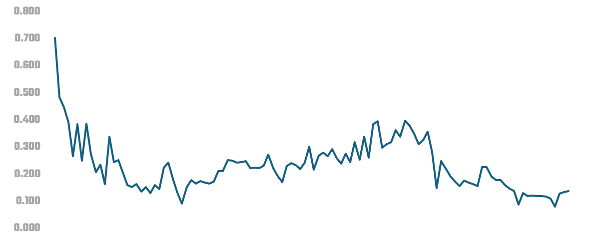 Viewing trends by era is a useful place to start; you can see where there might be significant differences at the higher level. To do this, we calculated the average EPI for each of the eras and plotted with a column chart. We included a trendline across the eras and found EPI declined over time. Note that while it declined overall, we did see higher EPI in the Expansion and Great One eras.