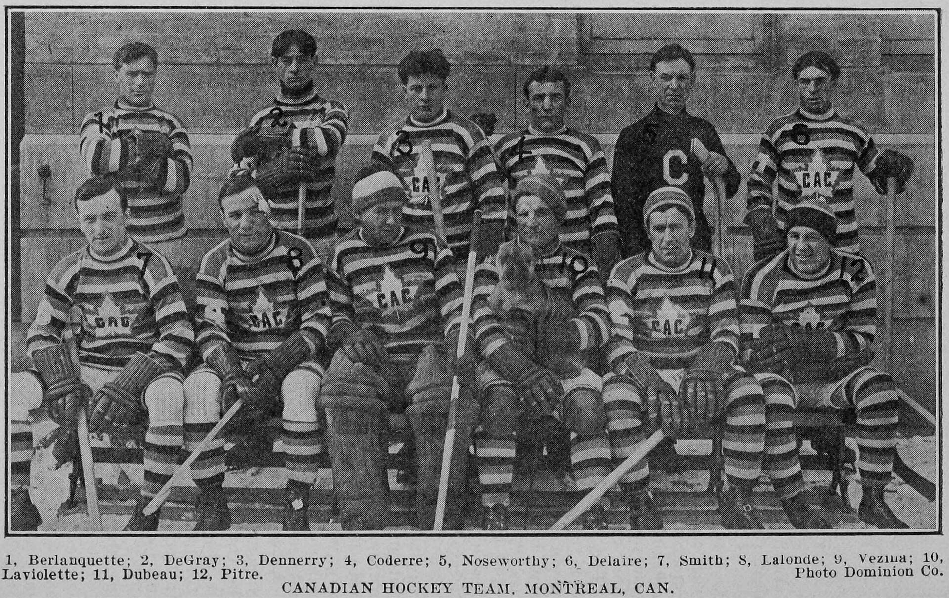 He won five Stanley Cups and was inducted in 1959 into the Hockey Hall of Fame! Here's a picture of Denneny along with the rest of the motley crew that represented the Ottawa Senators of the day. Yes, hockey has come a long way!