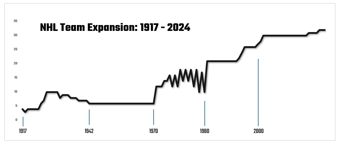 This was the first newsletter in a series that explores the storied history of the NHL – hockey and hockey analytics. We introduced the series and then split out how we'll be exploring the NHL history through team expansion. That is, we discovered five eras emerged as we looked at team expansion in the history of the NHL.