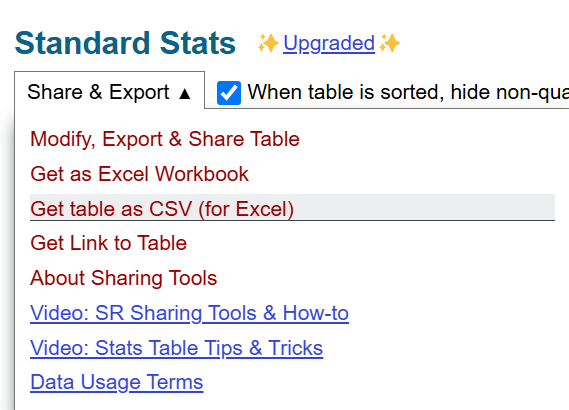 There are two ways to get the NHL's statistical data. The first is to navigate to their stats page, query and filter for the data you want and then download it, which we'll cover today. The second is to use an unofficial NHL API to programmatically access the data; however, the API is not documented by the NHL and you need programming skills to use it.