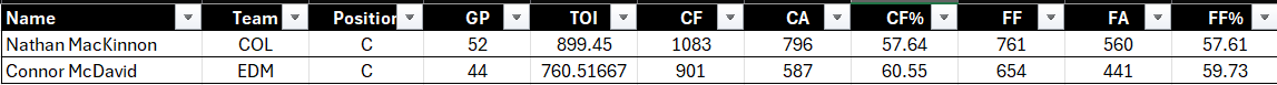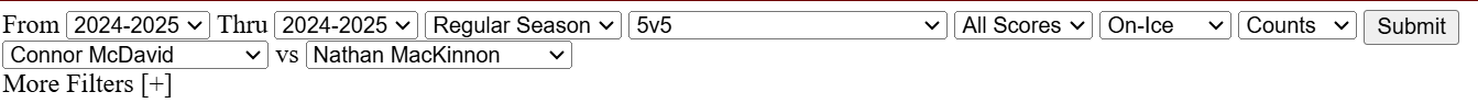 Let's say you want to answer the following question when trying to decide between two DFS picks: How does Connor McDavid compare to Nathan MacKinnon across key statistics?