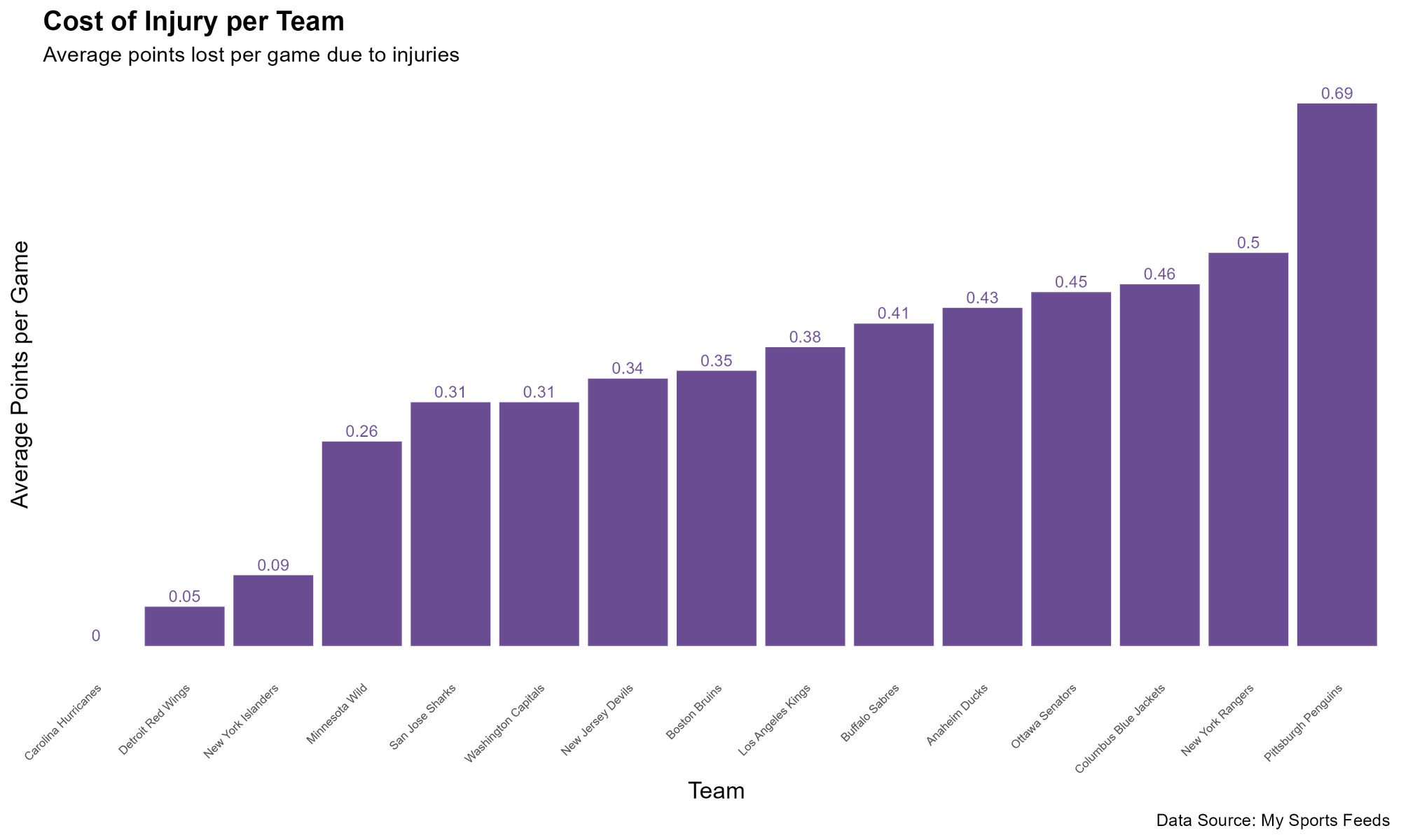 And here, irrespective of the number of injuries, we see that Pittsburgh has the highest impact cost with an average points per game of 0.69.