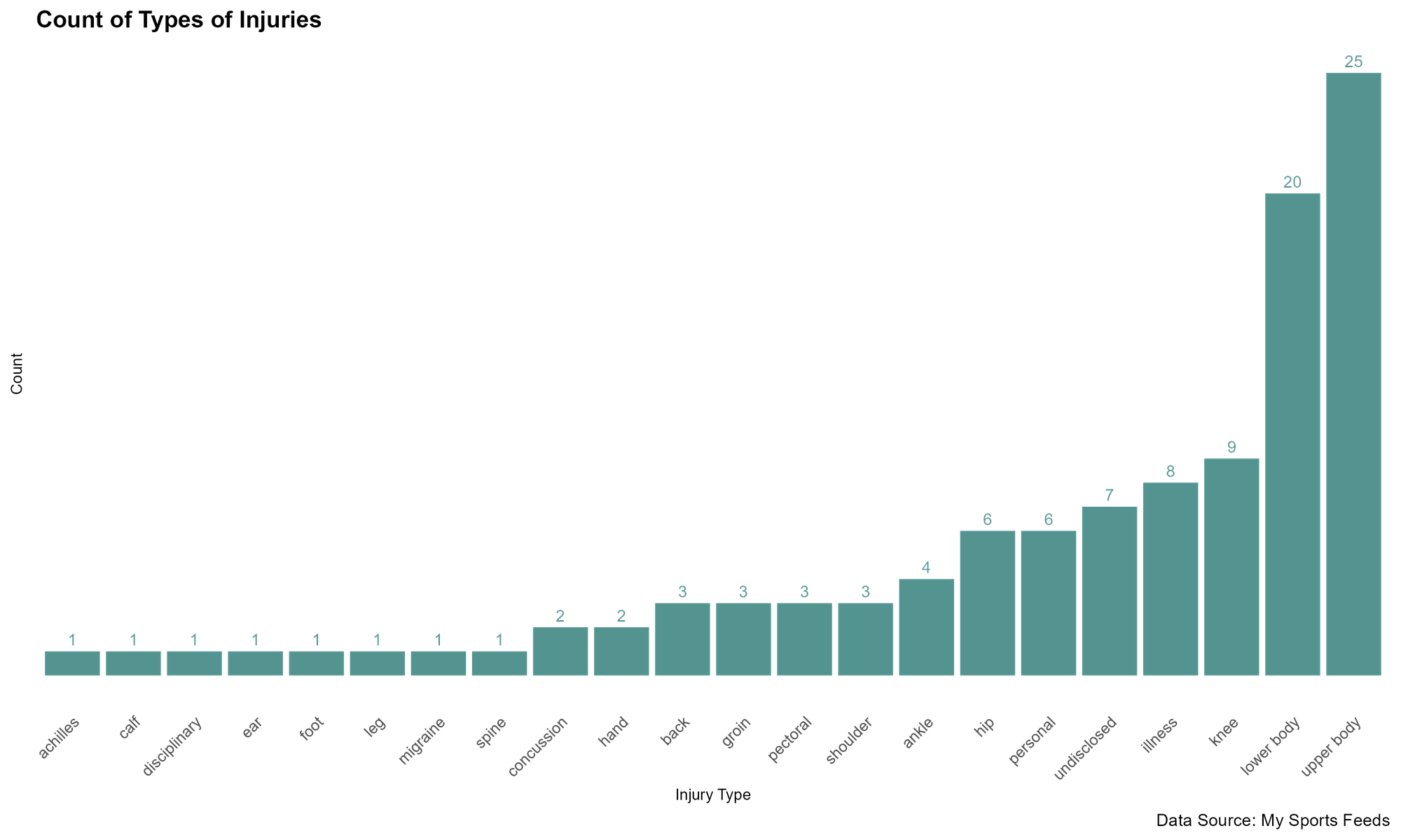 title = "Count of Types of Injuries",