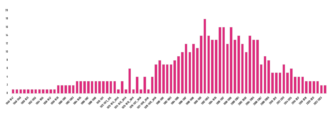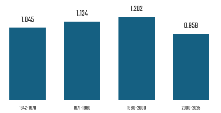 Further, when you pivot the average PPG by Era, you see that the high point for point-producing superstars was 1980-2000, a time that witnessed the likes of Wayne Gretzky and Mario Lemieux and enforcers, such as Bob Probert and Keith Tkachuk.