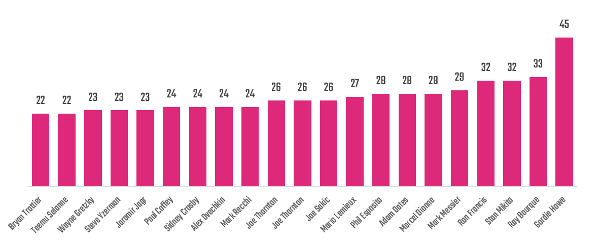This should give us a profile of the superstar cohort and give us a relative sense for how Gretzky and Lemieux compared to that cohort. It should also help us discover some other interesting facts that may evolve our narrative.