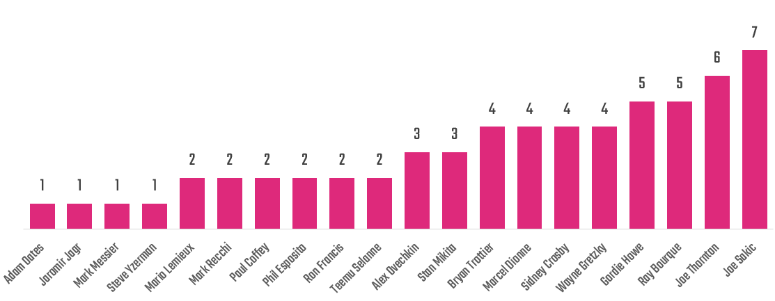 "Joe Sakic", "Alex Ovechkin", "Phil Esposito",