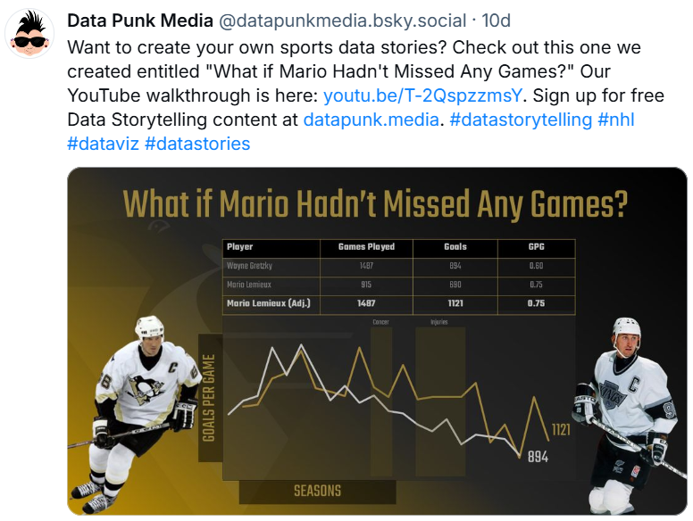 In this seventh lesson in our email course on Data Storytelling for Sports, we covered how to create a social post using PowerPoint and Canva. The assumption here would be that you are a more junior designer/creator and are using easily-accessible tools. We also introduced you to our design templates, which you can use as a quick way to get started on creating your social posts.