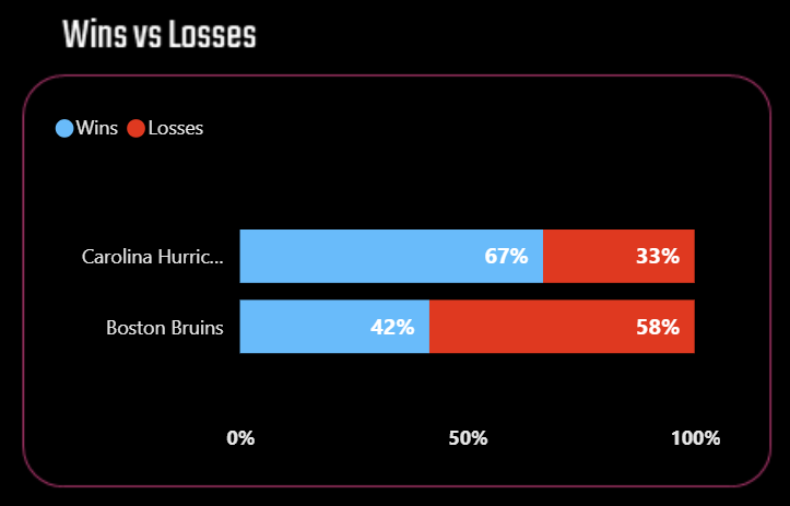 After creating an initial dataset summary using summary statistics, you represent that data through a visualization. Data visualizations, such as bar charts, line graphs, histograms, and scatter plots, help present data in a meaningful way and help you spot trends, patterns, relationships, and outliers. For example, here's an example of the ratio (expressed as a percentage) between a team's wins and losses.