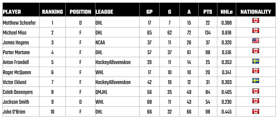 Welcome to the second post in our NHL Draft 25 series. This week, we'll do a deep dive into the top 10 prospects, as ranked by the Elite Prospects Consolidated Ranking. There's a ton of talent in the top 10 prospects armed with strong offensive prowess, breakout blueliners and players who can control the ice.