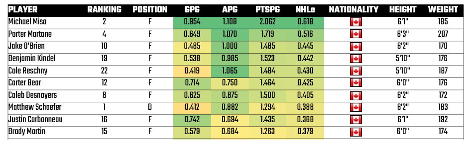 In this week's post, we're going to focus on the top talent in EP's consolidated ranking and rank the prospects by the NHLe metric and map them to a sample of teams in the first round draft.