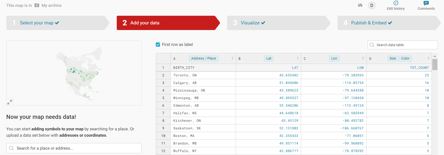 After Datawrapper auto-generates the coordinates, you are ready to proceed to the next step.
