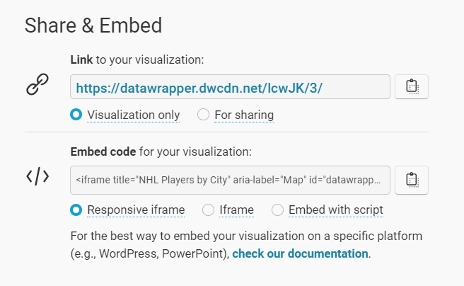 The final step is to integrate the choropleth map in your content. This could be an article, report or even a PowerPoint presentation. Datawrapper is a great tool to use to integrate with your content because the charts and maps are displayed as interactive and dynamic charts.