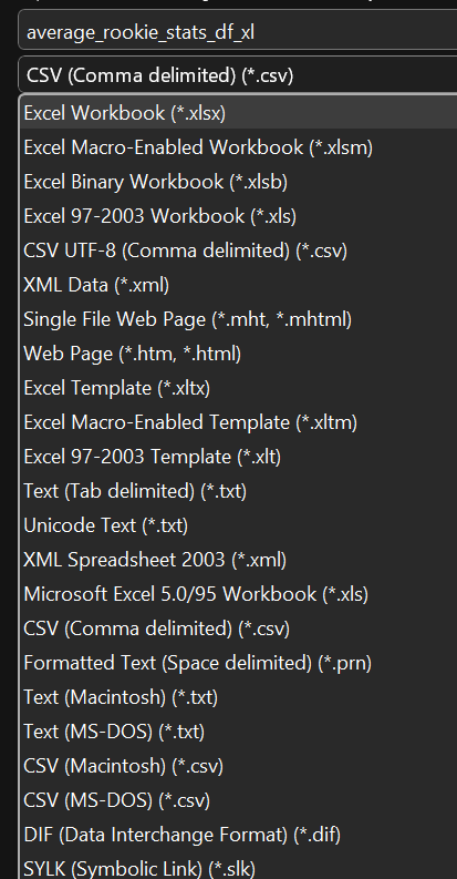 The final code snippet creates averages across seasons for the selected players and then saves the resulting data frame as a CSV file.