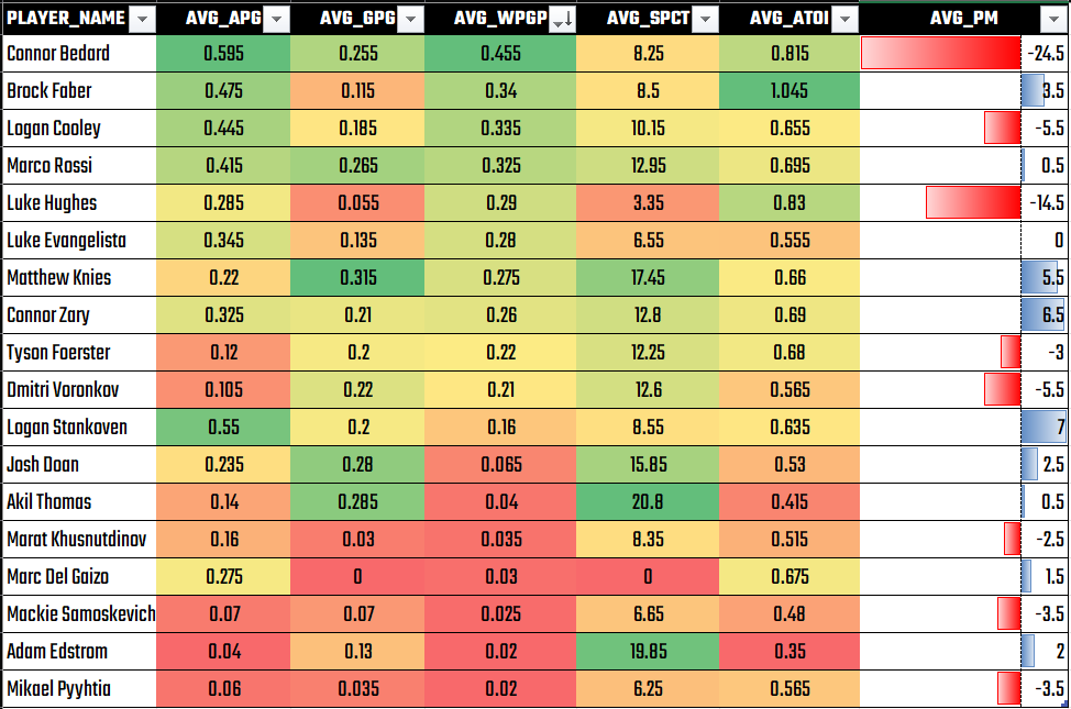 And that's it! You now have a heatmap that compares the top rookies in the NHL!