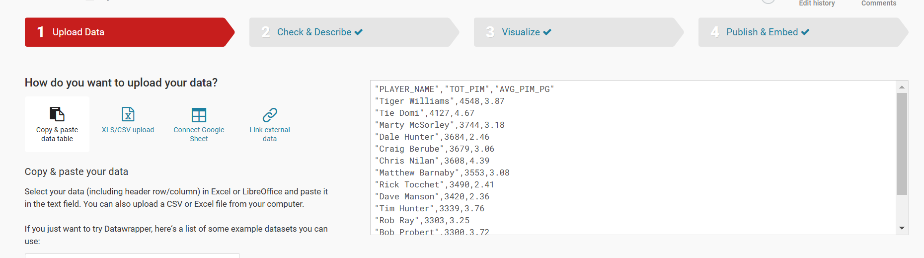You can now use the CSV file to create a new visualization in Datawrapper.