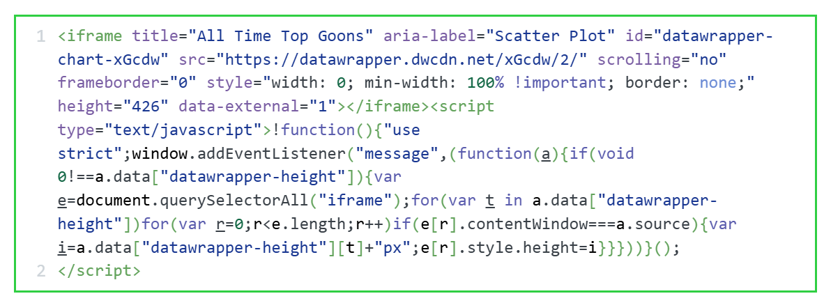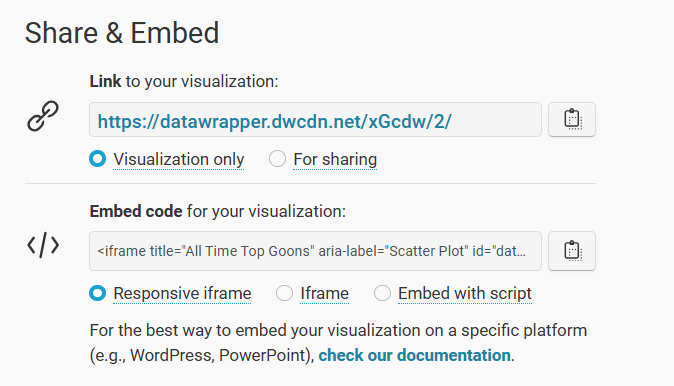 The final step is to integrate the Scatter Plot in your content. This could be an article, report or even a PowerPoint presentation. Datawrapper is a great tool to use to integrate with your content because the charts and maps are displayed as interactive and dynamic charts.