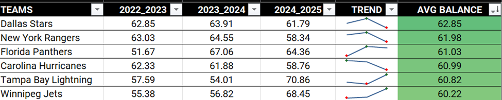 If hockey history has shown us anything, it’s that the Cup isn’t won by flash alone. A hot offense peters out. Goalies run cold. What matters most is balance. Enter the Team Balance Index (TBI).