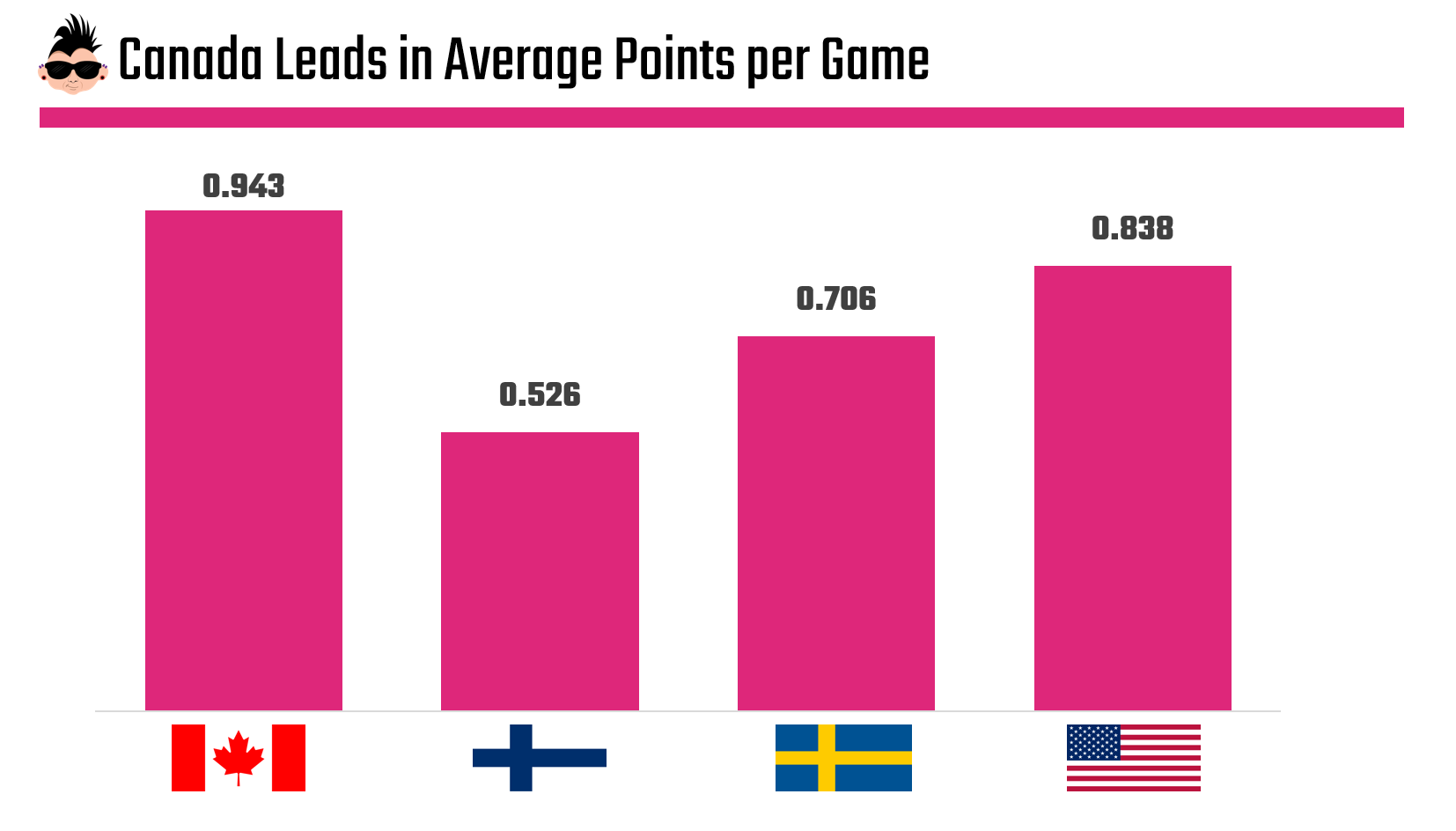 When viewed through the Points per Game lens, Canada unsurprisingly came out ahead again by a significant margin.