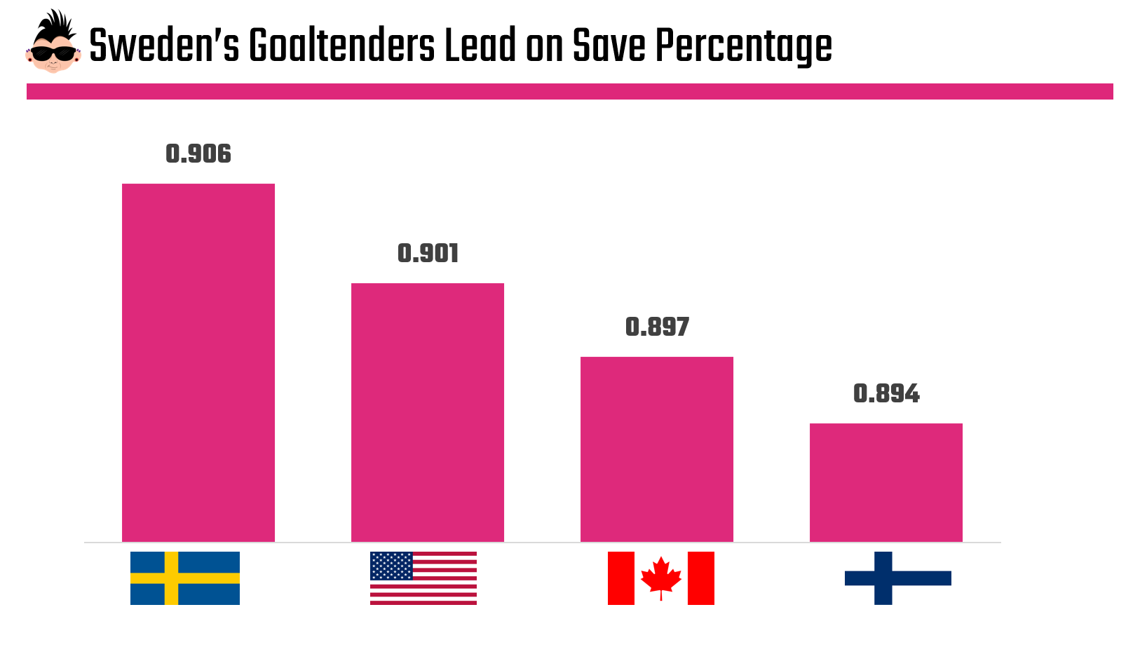 Save Percentages run a bit tighter, but here again Sweden is out in front.