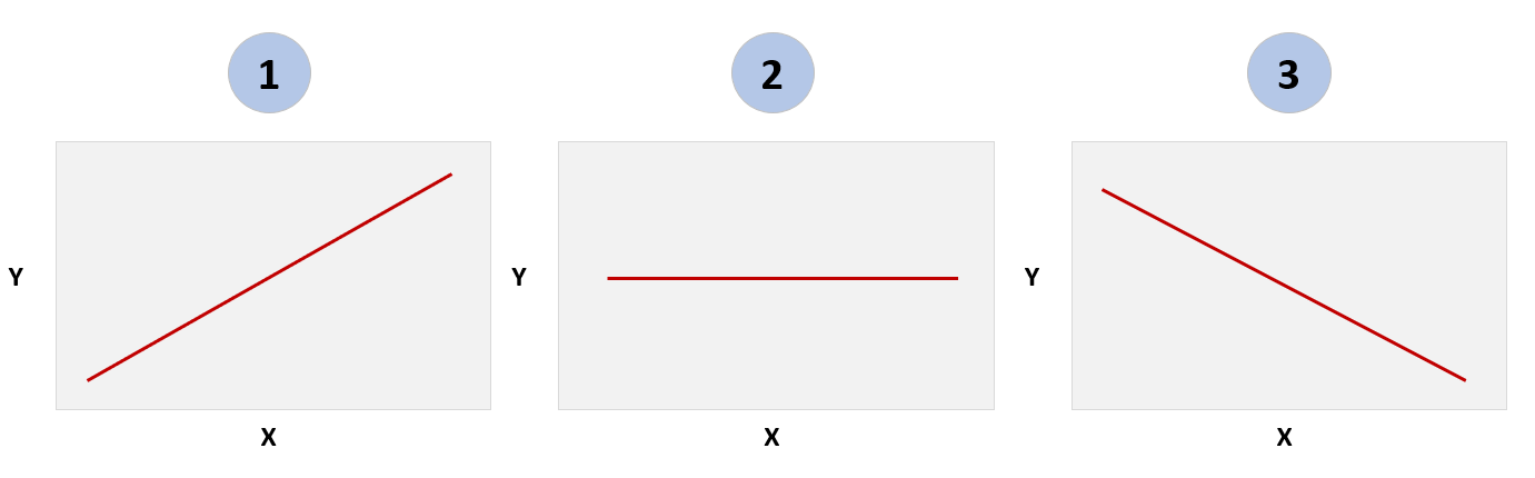 The slope of the linear regression line manifests in three directions: 1) positive, 2) neutral or 3) negative (see the diagram below). For example, if you want to test the hypothesis that rain (independent variable) results in umbrella usage (dependent variable) in Seattle between the months of October and April. You collect the data, build a linear regression model, plot the results and you'll likely find a linear regression similar to #1 below. That is, as rainfall increases, so does the likelihood that people will use umbrellas.