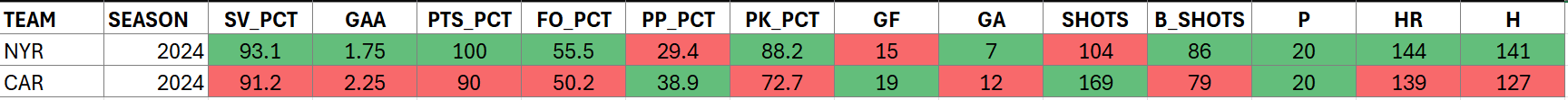 Before we close with Carolina and the Rangers, let's expand the view to include other stats and only focus on the first round's worth of stats.